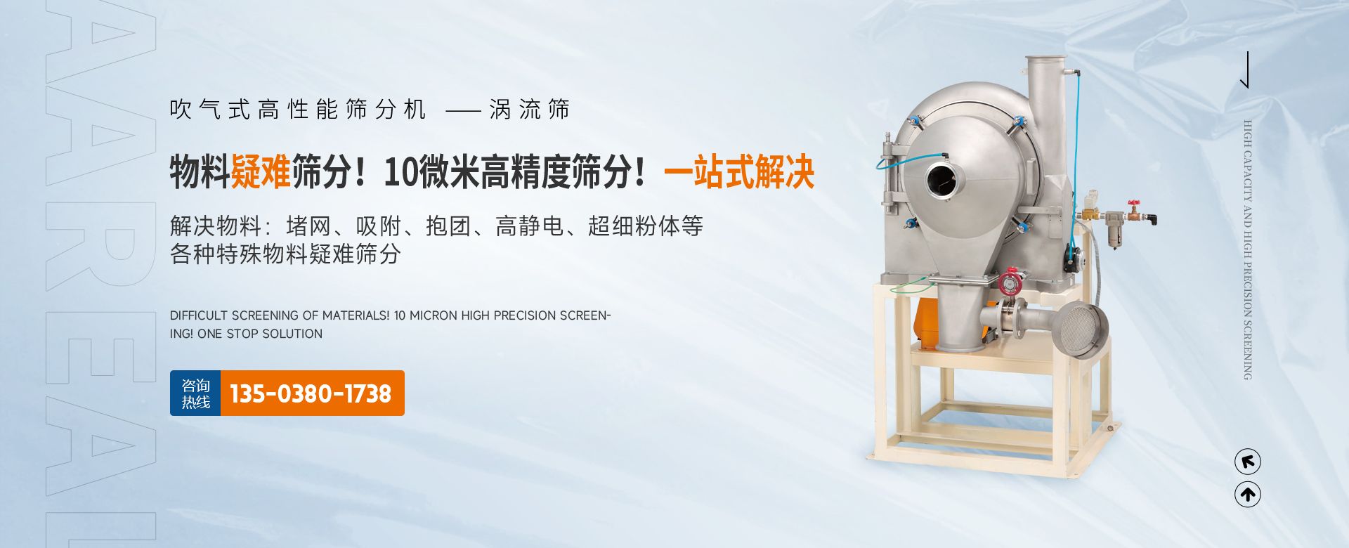 阿 瑞 爾(AAREAL)? 是從事篩分·過濾設(shè)備設(shè)計和制造的高新技術(shù)企業(yè),擁有先進(jìn)的生產(chǎn)設(shè)備、粉體篩分分析實驗室,在中國廣州市設(shè)辦事處。祝賀:新鄉(xiāng)市超大產(chǎn)能精細(xì)篩分技術(shù)工程中心在阿瑞爾(AAREAL)成立!!!在線大產(chǎn)能篩分和在線動態(tài)過濾是阿 瑞 爾(AAREAL)?的產(chǎn)品特點■ 在線大產(chǎn)能篩分,突破了傳統(tǒng)篩分觀念,工業(yè)化篩分,實現(xiàn)大產(chǎn)能、高能效篩分。以低故障率、低停機率、低使用成本、高產(chǎn)能、高精度、高能效為您帶來巨大意外收益。■ 阿瑞爾(AAREAL)擁有的回轉(zhuǎn)篩分技術(shù),擁有的近百種篩分解決方案及上千種物料的篩分經(jīng)驗,會給您展現(xiàn)全新的篩分設(shè)備,幫您實現(xiàn)大產(chǎn)能篩分 高精度篩分 疑難篩分。■ 阿瑞爾(AAREAL)的品質(zhì)保證:阿 瑞 爾(AAREAL)? 是高品質(zhì)篩分設(shè)備制造商高品質(zhì)是阿 瑞 爾(AAREAL)? 質(zhì)量準(zhǔn)則。優(yōu)品設(shè)備 合理篩分是阿 瑞 爾(AAREAL)?回報客戶的驗收標(biāo)準(zhǔn)。——我們不但擁有先進(jìn)的生產(chǎn)設(shè)備,而且對于每一道工序,每一個細(xì)節(jié),我們都要精工細(xì)作。對于客戶的每一個細(xì)微的問題,我們都要認(rèn)真解決。——精心制作和用心服務(wù)是我們對客戶的責(zé)任。阿瑞爾(AAREAL)是您成功道路上值得信賴的、合作伙伴,以良好的質(zhì)量、經(jīng)驗和服務(wù)享譽多個國家,確保您安心地選擇每一件產(chǎn)品,阿瑞爾(AAREAL)竭誠與國內(nèi)外商家雙贏合作,共同發(fā)展,共創(chuàng)輝煌!阿瑞爾(AAREAL)——您正確的選擇。